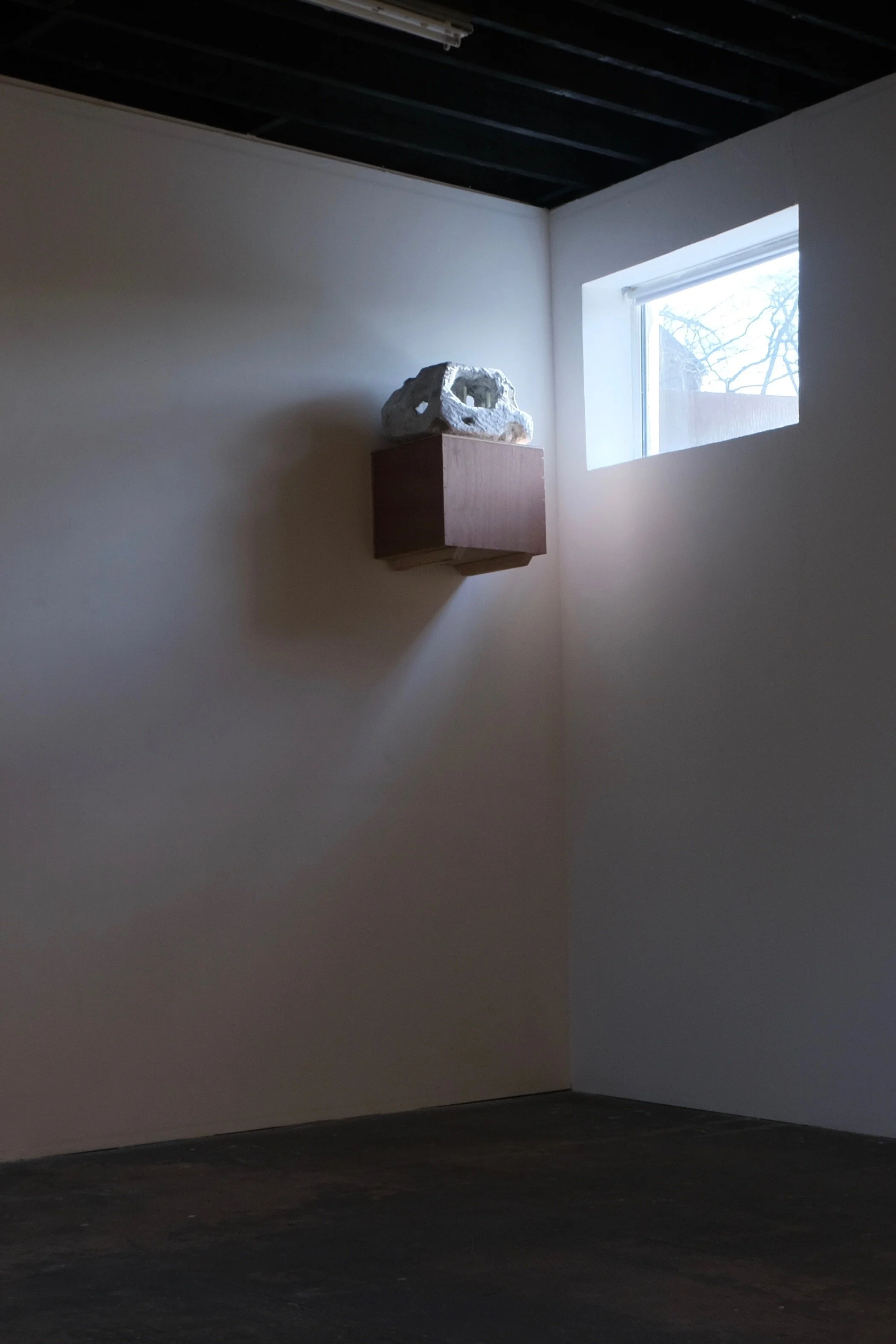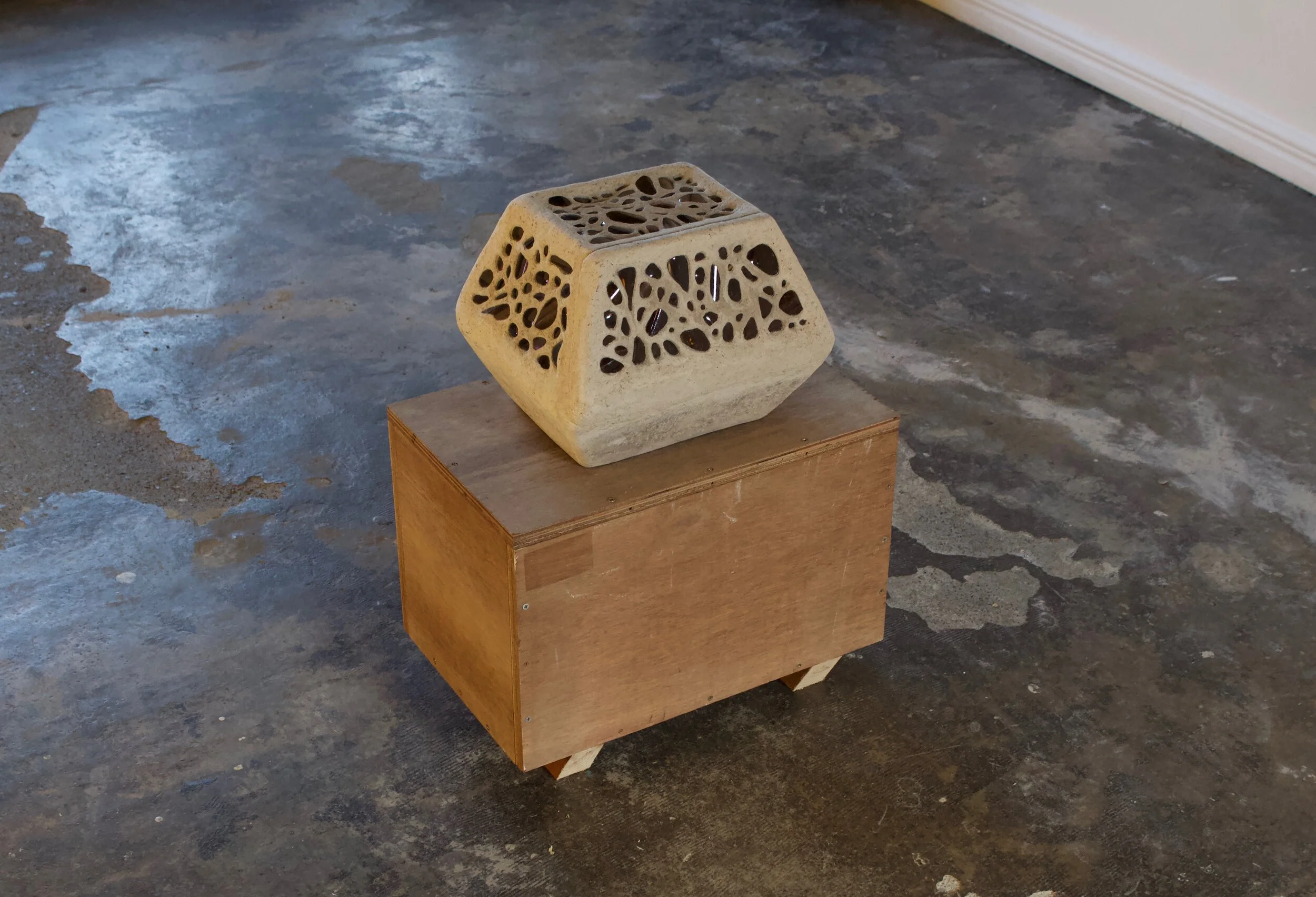 Untitled (Cave Casket), 2020, water, plywood, cement, paper, glass, strontium aluminate powder, resin, filler, card, wood glue, pva, stone, silica-based concrete hardener, gypsum plaster, sand, masking tape, screws, height approx. 45cm,